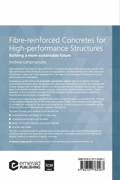 Fibre-reinforced Concretes for High-performance Structures focuses on fibre-reinforced concrete, ultra-high-performance fibre-reinforced concrete and geopolymer concrete and their use in the construction of structures. It deals with recent developments in the area of concrete types for enhanced structural performance and sustainability. Designed as a guide to filling the knowledge gap between research and use in industry, this book presents key information about the development, performance and design of three main materials and critically analyses them to highlight the key mechanical properties and durability characteristics. Design aspects are covered using both research outcomes and available guidelines/code provisions. Critical evaluation of the mechanical properties of all the examined materials are presented in addition to environmental end economic considerations. Selected case studies are also presented for the examined concrete types in a consistent form, focusing on the material properties and on the construction process. Finally, recent findings on the application of the examined materials for the structural strengthening of existing structures are presented and the efficiency of the use of the examined materials is highlighted. This book considers each material in turn focusing onmaterial selection and design of concrete mixes mechanical performance and durability design of structural elements using these materials selected case studies. This title is an essential read for engineers and concrete specialists, from students and technicians to practising engineers and researchers, and those looking for sustainable solutions to civil engineering projects involving the selection of specific concretes.