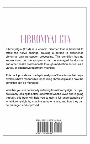 FIBROMYALGIA Fibromyalgia (FBM) is a chronic disorder that is believed to affect the nerve endings, causing a person to experience abnormal pain perception processing. This condition has no known cure, but the symptoms can be managed by doctors and other health professionals through medication as well as a variety of alternative treatment methods. This book provides an in-depth analysis of the science that helps explain what's responsible for causing fibromyalgia and how the condition can be managed. Whether you are personally suffering from fibromyalgia, or if you are simply looking to better understand what a loved one is going through, this book will help you to gain a full understanding of what fibromyalgia is, what the symptoms are, and how they can be managed and improved. Are you ready to discover more about Fibromyalgia and how it may be treated? Scroll up and click "Buy Now" today!