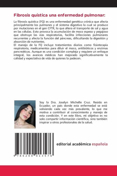 La fibrosis quística (FQ) es una enfermedad genética crónica que afecta principalmente los pulmones y el sistema digestivo la cual se produce por mutaciones en el gen CFTR, lo que altera el transporte de sal y agua en las células. Esto provoca la acumulación de moco espeso y pegajoso que obstruye las vías respiratorias, facilita infecciones pulmonares recurrentes y afecta la función del páncreas, dificultando la digestión y absorción de nutrientes.El manejo de la FQ incluye tratamientos diarios como fisioterapia respiratoria, medicamentos para diluir el moco, antibióticos y enzimas pancreáticas. Aunque es una condición compleja y requiere un enfoque integral, los avances médicos han mejorado significativamente la calidad y expectativa de vida de quienes la padecen.