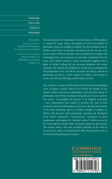 Offers a clear and accessible translation of Johann Gottlieb Fichte's Attempt at a Critique of All Revelation.