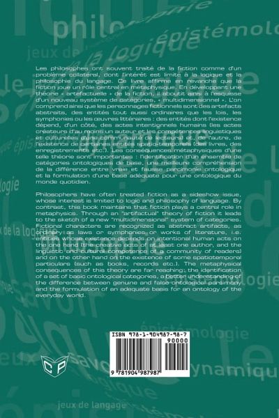 Les philosophes ont souvent traité de la fiction comme d'un problème collatéral, dont l'intérêt est limité à la logique et la philosophie du langage. Ce livre affirme en revanche que la fiction joue un rôle central en métaphysique. En développant une théorie « artefactuelle » de la fiction il aboutit ainsi à l'esquisse d'un nouveau système de catégories, « multidimensionnel ». L'on comprend ainsi que les personnages fictionnels sont des artefacts abstraits, des entités tout aussi ordinaires que les lois, les symphonies ou les ¿uvres littéraires : des entités dont l'existence dépend, d'un côté, des actes intentionnels humains (les actes créateurs d'au moins un auteur et les compétences linguistiques et culturelles d'une communauté de lecteurs) et, de l'autre, de l'existence de certaines entités spatio-temporels (des livres, des enregistrements etc.). Les conséquences métaphysiques d'une telle théorie sont importantes : l'identification d'un ensemble de catégories ontologiques de base, une meilleure compréhension de la différence entre vraie et fausse parcimonie ontologique et la formulation d'une base adéquate pour une ontologique du monde quotidien. Philosophers have often treated fiction as a sideshow issue, whose interest is limited to logic and philosophy of language. By contrast, this book maintains that fiction plays a central role in metaphysics. Through an "artifactual" theory of fiction it leads to the sketch of a new "multidimensional" system of categories. Fictional characters are recognized as abstract artifacts, as ordinary as laws or symphonies or works of literature, i.e. entities whose existence depends on intentional human acts on the one hand (the creative acts of at least one author, and the linguistic and cultural competence of a community of readers) and on the other hand on the existence of some spatiotemporal particulars (such as books, records etc.). The metaphysical consequences of this theory are far reaching: the identification of a set of basic ontological categories, a better understanding of the difference between genuine and false ontological parsimony and the formulation of an adequate basis for an ontology of the everyday world.
