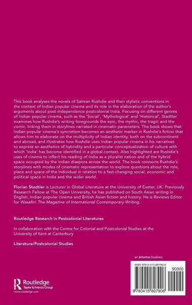 This book analyses the novels of Salman Rushdie and their stylistic conventions in the context of Indian popular cinema and its role in the elaboration of the author's arguments about post-independence postcolonial India. Focusing on different genres of Indian popular cinema, such as the 'Social', 'Mythological' and 'Historical', Stadtler examines how Rushdie's writing foregrounds the epic, the mythic, the tragic and the comic, linking them in storylines narrated in cinematic parameters. The book shows that Indian popular cinema's syncretism becomes an aesthetic marker in Rushdie's fiction that allows him to elaborate on the multiplicity of Indian identity, both on the subcontinent and abroad, and illustrates how Rushdie uses Indian popular cinema in his narratives to express an aesthetics of hybridity and a particular conceptualization of culture with which 'India' has become identified in a global context. Also highlighted are Rushdie's uses of cinema to inflect his reading of India as a pluralist nation and of the hybrid space occupied by the Indian diaspora across the world. The book connects Rushdie's storylines with modes of cinematic representation to explore questions about the role, place and space of the individual in relation to a fast-changing social, economic and political space in India and the wider world.
