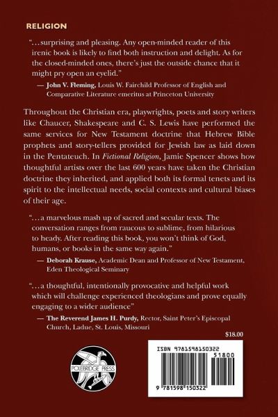 The books of the New Testament are not the infallible words of God. The texts were in a state of flux during the faith s early centuries. We can and should build on that flexible tradition. These are the claims by which this book is guided. In Fictional Religion, Jamie Spencer challenges readers to take a more rational, more scholarly, and a more historical-critical approach to the New Testament. He examines twelve writers who, he posits, allow us to see how thoughtful artists over the last 600 years have taken the Christian doctrine they inherited, and applied both its formal tenets and its spirit to the intellectual needs, social contexts and cultural biases of their age. Throughout the Christian era, playwrights, poets and story writers like Chaucer, Shakespeare and C. S. Lewis have performed the same services for New Testament doctrine that Hebrew Bible prophets and story-tellers provided for Jewish law as laid down in the Pentateuch. Although our creative artists are not allowed official entry into Holy Writ, they shape Christian doctrine and insights in new ways to meet new human conditions. They keep the New Testament new.
