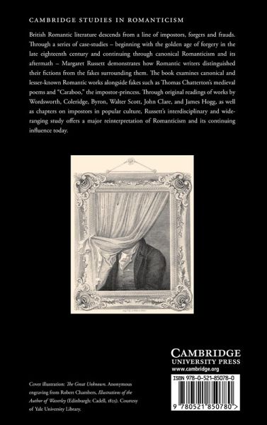 British Romantic literature descends from a line of impostors, forgers and frauds. Through a series of case-studies - beginning with the golden age of forgery in the late eighteenth century and continuing through canonical Romanticism and its aftermath - Margaret Russett demonstrates how Romantic writers distinguished their fictions from the fakes surrounding them. This 2006 book examines canonical and lesser-known Romantic works alongside fakes such as Thomas Chatterton's medieval poems and 'Caraboo', the impostor-princess. Through original readings of works by Wordsworth, Coleridge, Byron, Walter Scott, John Clare, and James Hogg, as well as chapters on impostors in popular culture, Russett's interdisciplinary and wide-ranging study offers a major reinterpretation of Romanticism and its continuing influence today.