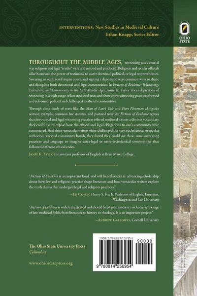 Throughout the Middle Ages, witnessing was a crucial way religious and legal "truths" were understood and produced. Religious and secular officials alike harnessed the power of testimony to assert doctrinal, political, or legal responsibilities. Swearing an oath, testifying in court, and signing a deposition were common ways to shape and discipline both devotional and legal communities. In Fictions of Evidence: Witnessing, Literature, and Community in the Late Middle Ages, Jamie K. Taylor traces depictions of witnessing in a wide range of late medieval texts and shows how witnessing practices formed and reformed, policed and challenged medieval communities. Through close study of texts like the Man of Law's Tale and Piers Plowman alongside sermon exempla, common law statutes, and pastoral treatises, Fictions of Evidence argues that vernacular literature was a vital site of criticism and dissent. It shows that devotional and legal witnessing practices offered medieval writers a distinct vocabulary they could use to expose how the ethical and legal obligations to one's community were constructed. And since vernacular writers often challenged the ways ecclesiastical or secular authorities asserted community bonds, they found they could use those same witnessing practices and language to imagine extra-legal or extra-ecclesiastical communities that followed different ethical codes.