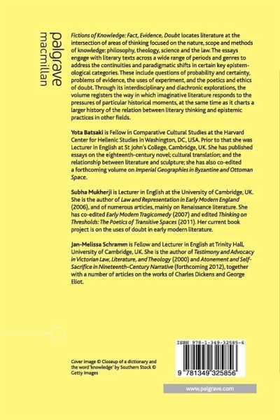 Locating literature at the intersection of distinct areas of thinking on the nature, scope and methods of knowledge - philosophy, theology, science, and the law - this book engages with literary texts across periods and genres to address questions of probability, problems of evidence, the uses of experiment and the poetics and ethics of doubt.