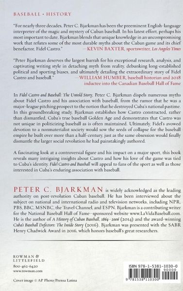 Few political figures of the modern age have been so vilified as Fidel Castro, and both the vilification and worship generated by the Cuban leader have combined to distort the true image of Castro. The baseball myths attached to Fidel have loomed every bit as large as the skewed political notions that surround him. Castro was never a major league pitching prospect, nor did he destroy the Cuban national pastime in 1962. In Fidel Castro and Baseball: The Untold Story, Peter C. Bjarkman dispels numerous myths about the Cuban leader and his association with baseball. In this groundbreaking study, Bjarkman establishes how Fidel constructed, rather than dismantled, Cuba's true baseball Golden Age-one that followed rather than preceded the 1959 revolution. Bjarkman also demonstrates that Fidel was not at all unique in "politicizing" baseball as often maintained, since the island sport traces its roots to the 19th-century revolution. Fidel's avowed devotion to a non-materialist society would ultimately sow the seeds of collapse for the baseball empire he built over more than a half-century, just as the same obsession would finally dismantle the larger social revolution he had painstakingly authored. A fascinating look at a controversial figure and his impact on a major sport, this volume reveals many intriguing insights about Castro and how his love of the game was tied to Cuba's identity. Fidel Castro and Baseball will appeal to fans of the sport as well as to those interested in Cuba's enduring association with baseball.