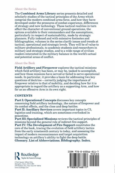 This definitive overview of the development and use of artillery makes the complex artillery systems of today understandable, while at the same time showing how they have evolved and how they are likely to change in the future. The author, until recently chief of artillery for the British Army, is considered one of the world's foremost experts on the subject. Unlike other books that either describe the technical aspects of present-day firepower or outline its history during specific wars, this work provides both a detailed explanation of the modern artillery system and a history of its development over the past six hundred fifty years, identifying its enduring principles and changing practices against an ever-changing background of technology, tactics, and strategy. When an earlier version of this book was published in 1989, it became known as the best single source on field artillery in the English language. This new edition has been fully updated and substantially expanded to cover a wide range of contemporary military debates and the role of firepower, and is certain to be regarded as the ultimate work on the subject for years to come. J. B. A. Bailey assesses major developments over the past decade, analyzing artillery operations in airborne, urban, littoral, desert, jungle, mountain, artic, and nocturnal environments. He examines direct fire, counterfire, the suppression of enemy air defenses, and force protection methods. He explains field artillery from its primitive beginnings to its dominance as an art in World War II and its potent utility in operations since 1945 and into the future. The book will be of particular interest to military historians and those engaged in debating firepower's future. Published in cooperation with the Association of the United States Army. 15 photographs. 8 line drawings. Appendixes. Notes. Bibliography. Index. 7 x 10 inches.