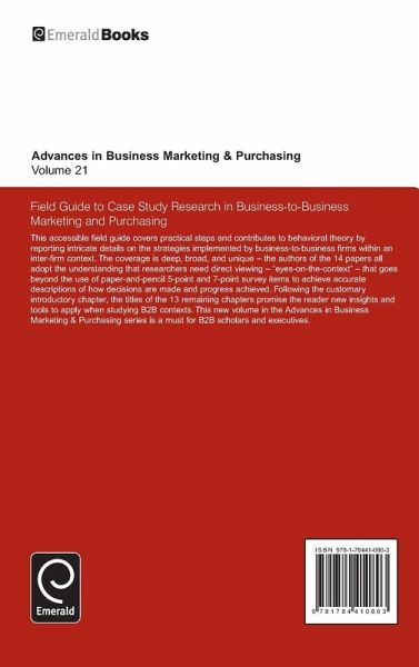 This new volume is a must for B2B scholars and executives. This volume is for readers who demand findings and modeling at the individual case level that are readily transferable and adaptable for alternative contexts.