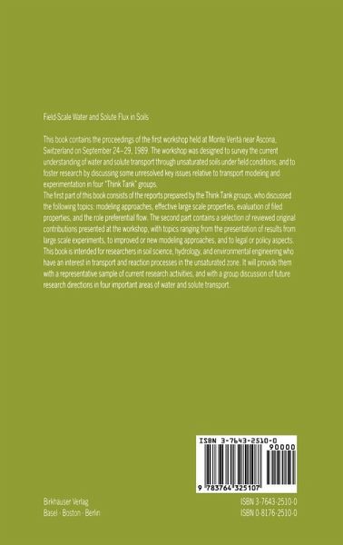 1 Think Tank Reports.- Flow and Transport Modeling Approaches: Philosophy, Complexity and Relationship to Measurements.- Effective Large Scale Unsaturated Flow and Transport Properties.- Evaluation of Field Properties from Point Measurements.- Evaluating the Role of Preferential Flow on Solute Transport through Unsaturated Field Soils.- 2 Papers.- Spatial Variability of Water and Solute Flux in a Layered Soil.- One and three Dimensional Evaluation of Solute Macrodispersion in an Unsaturated Sandy Soil.- Assessment of Field-Scale Leaching Patterns for Management of Nitrogen Fertilizer Application.- The Effect of Field Soil Variability in Water Flow and Indigenous Solute Concentrations on Transfer Function Modelling of Solute Leaching.- Analysis of Caisson Transport Experiment by Travel Time Approach.- Field Estimates of Hydraulic Conductivity from Unconfined Infiltration Measurements.- Sprinkler Irrigation, Roots and the Uptake of Water.- The Infiltration-Outflow Experiment Used to Detect Flow Deviations.- Spatial Variability of Unsaturated Flow Parameters in Fluvial Gravel Deposits.- Quantification of Deterministic and Stochastic Variability Components of Solute Concentrations at the Groundwater Table in Sandy Soils.- Use of Scaling Techniques to Quantify Variability in Hydraulic Functions of Soils in the Netherlands.- Kriging Versus Alternative Interpolators: Errors and Sensitivity to Model Inputs.- Spatial Averaging of Solute and Water Flows in Soil.- Criteria for Evaluating Pesticide Leaching Models.- Relating the Parameters of a Leaching Model to the Percentages of Clay and other Soil Components.- Prediction of Cation Transport in Soils Using Cation Exchange Reactions.- Transport of a Conservative Tracer under Field Conditions: Qualitative Modelling with Random Walkin a Double Porous Medium.- Mass Flux of Sorptive Solute in Heterogeneous Soils.- Effective Properties for Modeling Unsaturated Flow in Large-Scale Heterogeneous Porous Media.- Transport of Reactive Solutes in Spatially Variable Unsaturated Soils.- A Perturbation Solution for Transport and Diffusion of a Single Reactive Chemical with Nonlinear Rate Loss.- Areal Solute Flux Estimation: Legal Aspects.