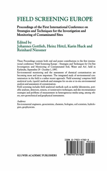 These Proceedings contain both oral and poster contributions to the first interna tional conference" Field Screening Europe - Strategies and Techniques for On-Site Investigation and Monitoring of Contaminated Soil, Water and Air", held in Karls ruhe September 29 - October 1, 1997. Environmental monitoring and the assessment of chemical contaminations are be coming more and more important. The integrated study of environmental con tamination in the field is a rather recent approach. "Field screening" indicates such field analytical tools, (quick) methods and strategies for on-site or in-situ environmental analysis and assessment of contamination. The classical strategy for investigating contaminants consists of the following steps: site studies, sampling, sample transport to the laboratory, sample preparation, and analysis. This strategy is rather expensive and time consuming. Some investiga tions, including sample preparation, may last several days. In many cases, the results must be available immediately and are of importance for further decisions. Field screening is an alternative or complement to this strategy that attempts to be cheaper and faster and may achieve the same quality of results. The most important argument for field analytical methods is that the superior accuracy and high costs of laboratory methods are disproportional to the possibility of arti facts from sampling and errors originating from spatial variations of contaminants.