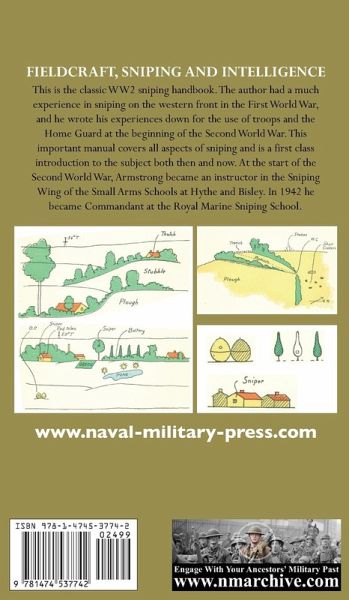 This is the classic WW2 sniping handbook. The author had much experience in sniping on the western front in the First World War, and he wrote his experiences down for the use of troops and the Home Guard at the beginning of the Second World War. This important manual covers all aspects of sniping and is a first class introduction to the subject both then and now. At the start of the Second World War, Armstrong became an instructor in the Sniping Wing of the Small Arms Schools at Hythe and Bisley. In 1942 he became Commandant at the Royal Marine Sniping School. Written by one of the greatest experts in the art of sniping, Lt-Colonel Nevill Armstrong, a Canadian Officer who served with distinction on the Western Front during the First World War, this is the classic WW2 sniping handbook. The author had much experience in sniping during the war and he wrote his experiences down for the use of troops and the Home Guard at the beginning of the Second World War. This important manual covers all aspects of sniping and is a first-class introduction to the subject both then and now. At the start of the Second World War, Armstrong became an instructor in the Sniping Wing of the Small Arms Schools at Hythe and Bisley. In 1942 he became Commandant at the Royal Marine Sniping School. Armstrong served in France between 1915 and 1917, being mentioned in despatches four times. He was Chief Instructor at the 2nd Army School of Scouting, Observation and Sniping from 1915-16, and Commandant of the Canadian Corps School of Sniping from 1917-18. The book covers all aspects of sniping, fieldcraft and intelligence. It was largely based on Armstrong's experiences in the trenches, and includes detailed instructions for snipers operating in trench warfare, along with descriptions of hides, loopholes, sniper suits and all the other equipment and techniques in use at the time. It is well illustrated with many line drawings and diagrams, some of which are in colour. The book also looks at the tactical use of fieldcraft, camouflage and battlefield intelligence work. The Allies' development of systematic sniping during WW1 was initially unpopular, even among their own troops, but was an inevitable response to highly effective German sniping. In the first two years of the war German sniping was accounting for around 100 fatalities a day. By the end of the war, Allied snipers were more than matching their German opponents, thanks largely to their Canadian instructors. In ‘Fieldcraft, Sniping and Intelligence’, Armstrong defines the sniper as: "An expert rifleman ‘out to kill’ who is highly trained in observation and the use of ground; equally valuable in trench and open warfare. He should be able to pick out targets exposed for only short periods and kill with a single shot from concealed positions".