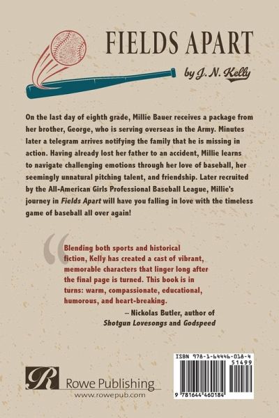 Moonbeam Children's Book Awards Bronze Medalist (2023), Young Adult Fiction category San Francisco Book Festival Honorable Mention (2023), Children's Books category On the last day of eighth grade, Millie Bauer receives a package from her brother, George, who is serving overseas in the Army. Minutes later a telegram arrives notifying the family that he is missing in action. Having already lost her father to an accident, Millie learns to navigate challenging emotions through her love of baseball, her seemingly unnatural pitching talent, and friendship. Later recruited by the All-American Girls Professional Baseball League, Millie's journey in Fields Apart will have you falling in love with the timeless game of baseball all over again! Fields Apart tells a historical fiction story about baseball and war, though these topics are merely vessels. Kelly uses these topics to underwrite more significant issues such as the struggles of men going to war, causing an increased workload that women must now undertake. These compounded struggles take a toll on main character, Millie, as she learns to navigate challenging emotions entwined with the loss of her father and the news of her brother, stated missing in action. The reader gets an up-close and personal view into what family life and the surrounding community became after young men were drafted or encouraged to join the Armed Forces. J.N. Kelly is a lifelong fan of baseball. He spent the summers of his childhood playing on sandlots with his brothers and kids from the neighborhood. He now works as a librarian in Wisconsin, where he lives with his wife and three children. He still dreams about those summer days. Find out more about him here: joeniese.com "... vibrant, memorable characters that linger long after the final page is turned."