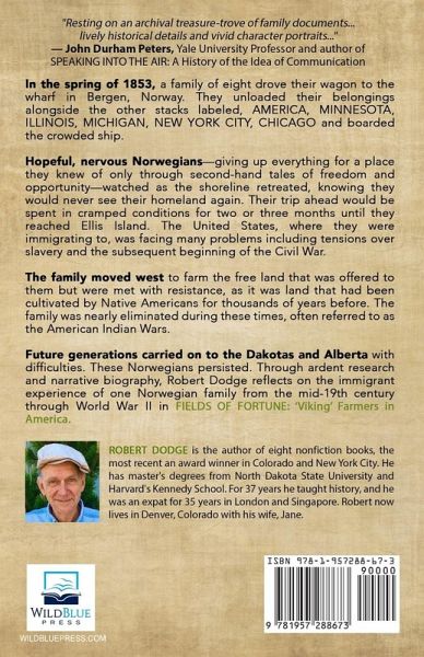 In the spring of 1853, a family of eight drove their wagon to the wharf in Bergen, Norway. They unloaded their belongings alongside the other stacks labeled, AMERICA, MINNESOTA, ILLINOIS, MICHIGAN, NEW YORK CITY, CHICAGO and boarded the crowded ship. Hopeful, nervous Norwegians-giving up everything for a place they knew of only through second-hand tales of freedom and opportunity-watched as the shoreline retreated, knowing they would never see their homeland again. Their trip ahead would be spent in cramped conditions for two or three months until they reached Ellis Island. The United States, where they were immigrating to, was facing many problems including tensions over slavery and the subsequent beginning of the Civil War. The family moved west to farm the free land that was offered to them but were met with resistance, as it was land that had been cultivated by Native Americans for thousands of years before. The family was nearly eliminated during these times, often referred to as the American Indian Wars. Future generations carried on to the Dakotas and Alberta with difficulties. These Norwegians persisted. Through ardent research and narrative biography, Robert Dodge reflects on the immigrant experience of one Norwegian family from the mid-19th century through World War II in FIELDS OF FORTUNE: 'Viking' Farmers in America.