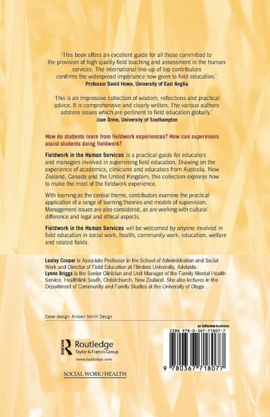 Tables and figures Contributors Preface Section 1 Teaching, learning and assessment in the field 1 Overview of teaching, learning and assessment in the field - Lesley Cooper and Lynne Briggs 2 Teaching and learning in human services fieldwork - Lesley Cooper 3 Approaches to supervision in fieldwork - Jill Wilson 4 The supervisory relationship - Elizabeth Beddoe 5 The competency approach - John Hopkins and Lesley Cooper 6 Two pedagogical approaches to group supervision in the human services - Sue Maywald 7 Assessment of performance - Lesley Hughes and Karen Heycox 8 Working with cultural difference - Rosemary Smart and Maurice Manawaroa Gray Section 2 The responsibilities of fieldwork management 9 Overview of responsibilities of fieldwork management - Lynne Briggs and Lesley Cooper 10 Legal responsibility and liability in fieldwork - Steven Shardlow 11 Ethics in fieldwork