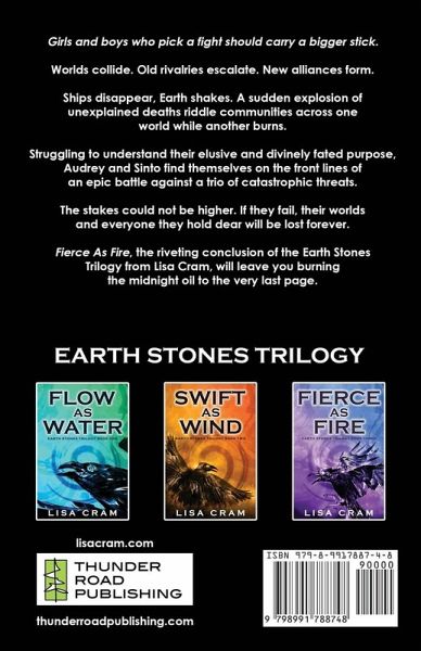 The final battle to save two worlds will test the bonds of love and destiny... Audrey and Sinto stand on the front lines of an epic battle against a trio of catastrophic threats. While the Larkians and the Merahvu maintain a powerful alliance, their mutual enemy-the Orankai-remain one step ahead and descend upon every corner of the globe. A sudden explosion of unexplained deaths confounds Earth's authorities. And Orange, a water-borne fungus, continues its deadly march across Earth's oceans. Although torn apart by forces Audrey and Sinto cannot control, the mystical Mark binding them makes them stronger. Audrey enlists unlikely allies to join the fight for control of Merluma. Sinto discovers an ancient stone that holds the secret to the Orankai's advantage-and the truth about Merluma's origins. As war rages, a foreboding reality becomes frighteningly clear. Merluma and Earth embroil in a war of their own. One in which no one can escape. Fierce As Fire is the epic conclusion to Lisa Cram's Earth Stones Trilogy, a breathtaking finale where love transcends worlds, sacrifice defines heroes, and two souls discover the only way to save everything is to unleash the power of the earth stones.