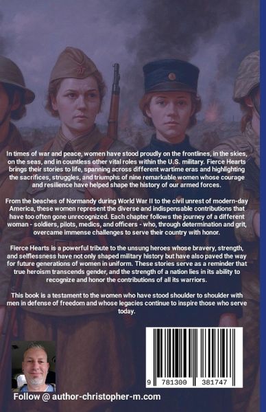 Fierce Hearts: Women of Courage, Duty, and Sacrifice In times of war and peace, women have stood proudly on the frontlines, in the skies, on the seas, and in countless other vital roles within the U.S. military. Fierce Hearts brings their stories to life, spanning across different wartime eras and highlighting the sacrifices, struggles, and triumphs of nine remarkable women whose courage and resilience have helped shape the history of our armed forces. From the beaches of Normandy during World War II to the civil unrest of modern-day America, these women represent the diverse and indispensable contributions that have too often gone unrecognized. Each chapter follows the journey of a different woman-soldiers, pilots, medics, and officers-who, through determination and grit, overcame immense challenges to serve their country with honor. Fierce Hearts is a powerful tribute to the unsung heroes whose bravery, strength, and selflessness have not only shaped military history but have also paved the way for future generations of women in uniform. These stories serve as a reminder that true heroism transcends gender, and the strength of a nation lies in its ability to recognize and honor the contributions of all its warriors. This book is a testament to the women who have stood shoulder to shoulder with men in defense of freedom and whose legacies continue to inspire those who serve today.