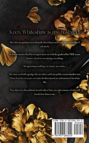 Knox Whiteshaw is my husband. He's also an egotistical psychopath who refuses to divorce me-even when I ask nicely. It doesn't matter that I'm trying to move on with the goalie of his NHL team. Knox is dead set on ruining everything. My upcoming wedding, my future, my sanity... The man can hold a grudge like no other, and I am public enemy number one. I have been for six years, ever since he threatened me and stormed out of my life. Now that we're forced back in each others' lives, it's only a matter of who will break first: him or me.