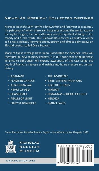 Nicholas Roerich (1874-1947) is known first and foremost as a painter. His paintings, of which there are thousands around the world, explore the mythic origins, the natural beauty, and the spiritual strivings of humanity and of the world. But Nicholas Roerich was as prolific a writer as he was a painter. He wrote books, poetry, and almost-daily essays on life and events (called Diary Leaves). Many of these writings have been unavailable for decades. They will therefore be new to many readers. It is our hope that bringing these volumes to light again will expand awareness of the vast range and depth of Roerich's interests and insights into human nature and cultural history.