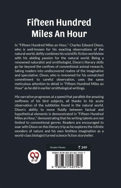 In "Fifteen Hundred Miles an Hour," Charles Edward Dixon, who is well-known for his exacting observations of the natural world, deftly combines his scientific fiction worldview with his abiding passion for the natural world. Being a renowned naturalist and ornithologist, Dixon's literary skills go far beyond the confines of conventional animal research, taking readers into undiscovered realms of the imaginative and speculative. Dixon, who is renowned for his unmatched commitment to careful observation, uses the same meticulous attention to detail in "Fifteen Hundred Miles an Hour" as he did in earlier ornithological writings. His narrative progresses at a speed that parallels the amazing swiftness of his bird subjects, all thanks to his acute observation of the subtleties found in the natural world. Dixon's ability to move fluidly between factual and hypothetical elements is demonstrated in "Fifteen Hundred Miles an Hour," demonstrating that his writing talents are not limited to conventional genres. Readers are encouraged to soar with Dixon on this literary trip as he explores the infinite wonders of nature and his own limitless imagination as a world-class biologist turned science fiction storyteller.