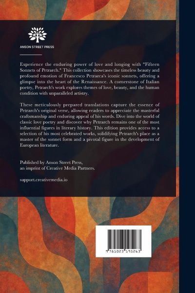 Experience the enduring power of love and longing with "Fifteen Sonnets of Petrarch." This collection showcases the timeless beauty and profound emotion of Francesco Petrarca's iconic sonnets, offering a glimpse into the heart of the Renaissance. A cornerstone of Italian poetry, Petrarch's work explores themes of love, beauty, and the human condition with unparalleled artistry. These meticulously prepared translations capture the essence of Petrarch's original verse, allowing readers to appreciate the masterful craftsmanship and enduring appeal of his words. Dive into the world of classic love poetry and discover why Petrarch remains one of the most influential figures in literary history. This edition provides access to a selection of his most celebrated works, solidifying Petrarch's place as a master of the sonnet form and a pivotal figure in the development of European literature. This work has been selected by scholars as being culturally important, and is part of the knowledge base of civilization as we know it. This work is in the public domain in the United States of America, and possibly other nations. Within the United States, you may freely copy and distribute this work, as no entity (individual or corporate) has a copyright on the body of the work. Scholars believe, and we concur, that this work is important enough to be preserved, reproduced, and made generally available to the public. We appreciate your support of the preservation process, and thank you for being an important part of keeping this knowledge alive and relevant.