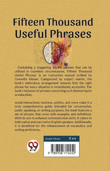 Containing a staggering 15,000 phrases that can be utilized in countless circumstances, 'Fifteen Thousand Useful Phrases' is an instructive manual scribed by Grenville Kleiser. Categorized by subject matter, the book's meticulous arrangement ensures that the right phrase for every situation is immediately accessible. The book's inclusion of phrases concerning such diverse topics as education, social interactions, business, politics, and more make it a truly comprehensive guide. Intended for conversation, public speaking, or writing purposes, the book features a set of phrases that come with examples and definitions. With its aim to enhance communication skills, it caters to both native and non-native English speakers. Additionally, it is beneficial for the enhancement of vocabulary and writing proficiency.
