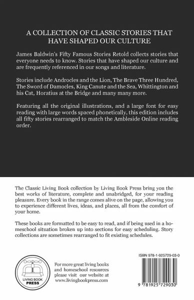 James Baldwin's classic collection of stories that have shaped our culture and our civilisation. Everyone should know these stories, like Androcles and the Lion, Damon and Pythius, the Brave Three Hundred, and more. The stories in this collection have been rearranged to match the Ambleside Online reading order, and includes all the original illustrations carefully restored for reprinting.
