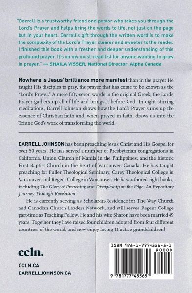 Nowhere is Jesus' brilliance more manifest than in the prayer He taught His disciples to pray, the prayer that has come to be known as the "Lord's Prayer." A mere fifty-seven words in the original Greek, the Lord's Prayer gathers up all of life and brings it before God. In eight stirring meditations, Darrell Johnson shows how the Lord's Prayer sums up the essence of Christian faith and, when prayed in faith, draws us into the Triune God's work of transforming the world.