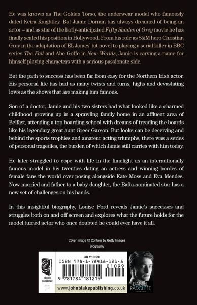 He was known as The Golden Torso, the underwear model who famously dated Keira Knightley. But Jamie Dornan has always dreamed of being an actor - and as star of the hotly-anticipated Fifty Shades of Grey movie he has finally sealed his position in Hollywood. From his role as S&M hero Christian Grey in the adaptation of EL James' hit novel to playing a serial killer in BBC series The Fall and Abe Goffe in New Worlds, Jamie is carving a name for himself playing characters with a serious passionate side. But the path to success has been far from easy for the Northern Irish actor. His personal life has had as many twists and turns, highs and devastating lows as the shows that are making him famous. Son of a doctor, Jamie and his two sisters had what looked like a charmed childhood growing up in a sprawling family home in an affluent area of Belfast, attending a top boarding school with dreams of treading the boards like his legendary great aunt Greer Garson. But looks can be deceiving and behind the sports trophies and amateur acting triumphs, there was a series of personal tragedies, the burden of which Jamie still carries with him today. He later struggled to cope with life in the limelight as an internationally famous model in his twenties dating an actress and winning hordes of female fans the world over posing alongside Kate Moss and Eva Mendes. Now married and father to a baby daughter, the Bafta-nominated star has a new set of challenges on his hands. In this, his first biography, Louise Ford, reveals Jamie's successes and struggles both on and off screen and explores what the future holds for the model turned actor who once doubted he could ever have it all.