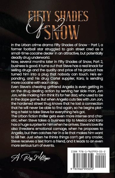 In the urban crime drama Fifty Shades of Snow - Part 1, former football star struggled to gain street cred as a small-time cocaine dealer in an attractive, but potentially deadly drug underworld. Now, several months later in 50 Shades of Snow, Part 2, business is good. It turns out that Steve has a real knack for selling drugs and the quality and price of his product has turned him into a plug that nobody can touch. He's expanding, and his drug cartel supplier, Karo, is sending more cocaine with each drop. Even Steve's cheating girlfriend Angelia is even getting in on the drug dealing action by serving her side man, Jon Jon, while making him think it's for her dad, who used to be in the dope game. But when Angelia cuts ties with Jon Jon, the hardened street thug knows that he lost a connection that he will never be able to find again, so he begins plotting a heist to take Steve for everything he's got. The urban fiction thriller gets even more intense and chaotic, when Steve takes a business trip to Mexico and Karo has a huge surprise for him when he arrives. Steve's love life also threatens emotional carnage, when he proposes to Angelia, but then catches her in a lie that makes him want to kill her. Just when he thinks things can't get any crazier, Steve receives a text from a friend, and it leads to an even more serious turn of events.