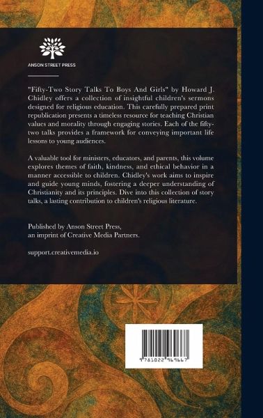 "Fifty-Two Story Talks To Boys And Girls" by Howard J. Chidley offers a collection of insightful children's sermons designed for religious education. This carefully prepared print republication presents a timeless resource for teaching Christian values and morality through engaging stories. Each of the fifty-two talks provides a framework for conveying important life lessons to young audiences. A valuable tool for ministers, educators, and parents, this volume explores themes of faith, kindness, and ethical behavior in a manner accessible to children. Chidley's work aims to inspire and guide young minds, fostering a deeper understanding of Christianity and its principles. Dive into this collection of story talks, a lasting contribution to children's religious literature. This work has been selected by scholars as being culturally important, and is part of the knowledge base of civilization as we know it. This work is in the public domain in the United States of America, and possibly other nations. Within the United States, you may freely copy and distribute this work, as no entity (individual or corporate) has a copyright on the body of the work. Scholars believe, and we concur, that this work is important enough to be preserved, reproduced, and made generally available to the public. We appreciate your support of the preservation process, and thank you for being an important part of keeping this knowledge alive and relevant.