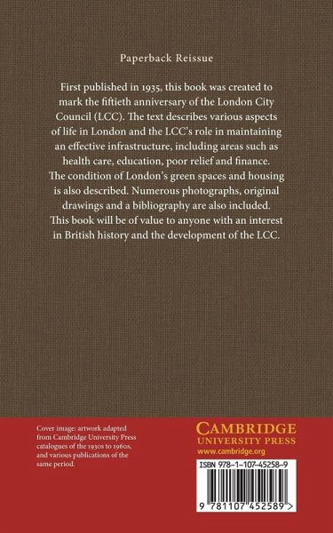 First published in 1935, this book was created to mark the fiftieth anniversary of the London City Council (LCC). The text describes various aspects of life in London and the LCC's role in maintaining an effective infrastructure, including areas such as health care, education, poor relief and finance. The condition of London's green spaces and housing is also described. Numerous photographs, original drawings and a bibliography are also included. This book will be of value to anyone with an interest in British history and the development of the LCC.