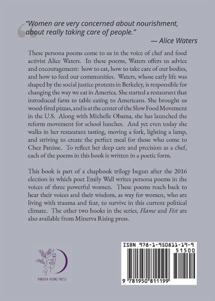 Fig encapsulates the voices of Alice Waters, chef, and food activist through persona poems. It seeks to speak to women who are living with trauma and fear in this current political climate.