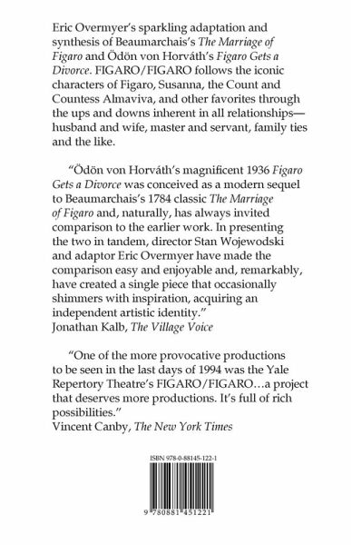 Eric Overmyer's sparkling adaptation and synthesis of Beaumarchais's THE MARRIAGE OF FIGARO and Ödön von Horváth's FIGARO GETS A DIVORCE. FIGARO/FIGARO follows the iconic characters of Figaro, Susanna, the Count and Countess Almaviva, and other favorites through the ups and downs inherent in all relationships - husband and wife, master and servant, family ties and the like. "Ödön von Horváth's magnificent 1936 FIGARO GETS A DIVORCE was conceived as a modern sequel to Beaumarchais's 1784 classic THE MARRIAGE OF FIGARO and, naturally, has always invited comparison to the earlier work. In presenting the two in tandem, director Stan Wojewodski and adaptor Eric Overmyer have made the comparison easy and enjoyable and, remarkably, have created a single piece that occasionally shimmers with inspiration, acquiring an independent artistic identity." -Jonathan Kalb, The Village Voice "One of the more provocative productions to be seen in the last days of 1994 was the Yale Repertory Theatre's FIGARO/FIGARO ... a project that deserves more productions. It's full of rich possibilities." -Vincent Canby, The New York Times