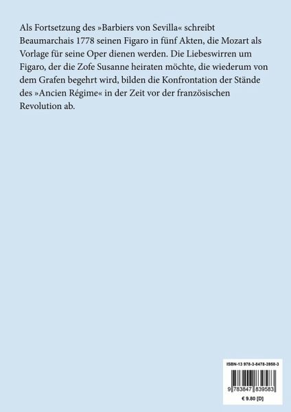 Pierre Augustin Caron de Beaumarchais: Figaros Hochzeit oder Der tolle Tag. (La folle journée, ou Le mariage de Figaro) Lesefreundlicher Großdruck in 16-pt-Schrift Als Fortsetzung des »Barbiers von Sevilla« schreibt Beaumarchais 1778 seinen Figaro in fünf Akten, die Mozart als Vorlage für seine Oper dienen werden. Die Liebeswirren um Figaro, der die Zofe Susanne heiraten möchte, die wiederum von dem Grafen begehrt wird, bilden die Konfrontation der Stände des »Ancien Régime« in der Zeit vor der französischen Revolution ab. Großformat, 210 x 297 mm Berliner Ausgabe, 2019 Durchgesehener Neusatz mit einer Biographie des Autors bearbeitet und eingerichtet von Theodor Borken Erstdruck: Paris (Ruault) 1785. Hier nach der Übers. v. Franz Dingelstedt, Leipzig: Verlag des Bibliographischen Instituts, [o.J.]. Textgrundlage ist die Ausgabe: Beaumarchais [Pierre-Augustin Caron de]: Figaro's Hochzeit. Übers. v. Franz Dingelstedt, Leipzig: Verlag des Bibliographischen Instituts, [o. J.]. Umschlaggestaltung von Thomas Schultz-Overhage unter Verwendung des Bildes: Rolinda Sharples, Garderobe der Clifton Assembly Rooms, 1818. Gesetzt aus der Minion Pro, 16 pt. Henricus Edition Deutsche Klassik UG (haftungsbeschränkt)