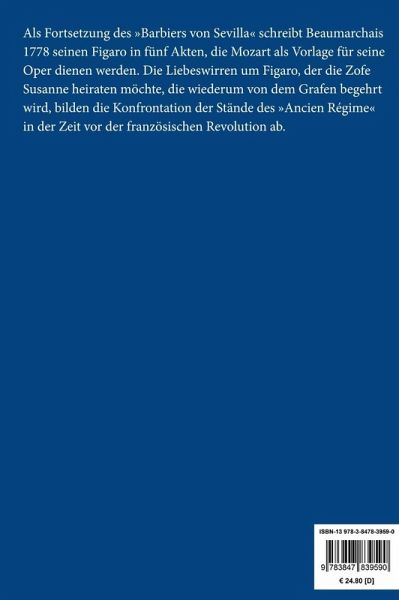 Pierre Augustin Caron de Beaumarchais: Figaros Hochzeit oder Der tolle Tag. (La folle journée, ou Le mariage de Figaro) Lesefreundlicher Großdruck in 16-pt-Schrift Als Fortsetzung des »Barbiers von Sevilla« schreibt Beaumarchais 1778 seinen Figaro in fünf Akten, die Mozart als Vorlage für seine Oper dienen werden. Die Liebeswirren um Figaro, der die Zofe Susanne heiraten möchte, die wiederum von dem Grafen begehrt wird, bilden die Konfrontation der Stände des »Ancien Régime« in der Zeit vor der französischen Revolution ab. Großformat, 210 x 297 mm Berliner Ausgabe, 2019 Durchgesehener Neusatz mit einer Biographie des Autors bearbeitet und eingerichtet von Theodor Borken Erstdruck: Paris (Ruault) 1785. Hier nach der Übers. v. Franz Dingelstedt, Leipzig: Verlag des Bibliographischen Instituts, [o.J.]. Textgrundlage ist die Ausgabe: Beaumarchais [Pierre-Augustin Caron de]: Figaro's Hochzeit. Übers. v. Franz Dingelstedt, Leipzig: Verlag des Bibliographischen Instituts, [o. J.]. Umschlaggestaltung von Thomas Schultz-Overhage unter Verwendung des Bildes: Rolinda Sharples, Garderobe der Clifton Assembly Rooms, 1818. Gesetzt aus der Minion Pro, 16 pt. Henricus Edition Deutsche Klassik UG (haftungsbeschränkt)