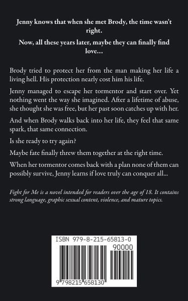 Jenny knows that when she met Brody, the time wasn't right. Now, all these years later, maybe they can finally find love… Brody tried to protect her from the man making her life a living hell. His protection nearly cost him his life. Jenny managed to escape her tormentor and start over. Yet nothing went the way she imagined. After a lifetime of abuse, she thought she was free, but her past soon catches up with her. And when Brody walks back into her life, they feel that same spark, that same connection. Is she ready to try again? Maybe fate finally threw them together at the right time. When her tormentor comes back with a plan none of them can possibly survive, Jenny learns if love truly can conquer all... Fight for Me is a novel intended for readers over the age of 18. It contains strong language, graphic sexual content, violence, and mature topics.