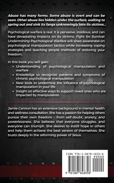 Abuse has many forms. Some abuse is overt and can be seen. Other abuse lies hidden under the surface, waiting to spring out and sink its fangs unknowingly into its victims… Psychological warfare is real. It is pervasive, insidious, and can have devastating impacts on its victims. Fight for Survival: Undermining Psychological Warfare will shed awareness on psychological manipulation tactics while increasing coping strategies and teaching simple methods of restoring your freedom. In this book you will gain: •Understanding of psychological manipulation and warfare •Knowledge to recognize patterns and symptoms of chronic psychological manipulation •New tools to undermine the influence of psychological manipulation in your life •Insight on effective ways to support loved ones who are impacted by manipulation