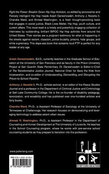 "Emerging from intersectional activism inspired and informed by the radical teachings of Hip Hop, this anthology offers first-hand accounts of how Hip Hop culture speaks truth to power taking action to address and eliminate oppression. Extremely timely, Fight the Power: Breakin Down Hip Hop Activism is a must read for anyone interested in how diverse scholar-artist activists are taking action in their communities." -Johnny Lupinacci, Associate Professor, Washington State University