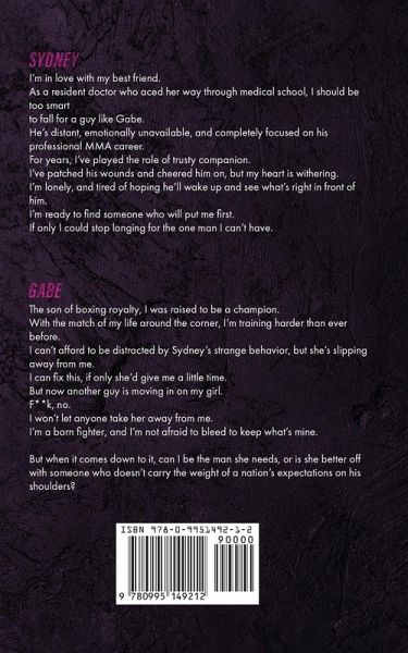 My best friend is hot, rich, and emotionally unavailable. Falling in love with him is the worst idea ever but try telling that to my heart. As a doctor who aced her way through medical school, I should be too smart to fall for Gabe Mendoza, a man who's married to his MMA career. For years, I've patched his wounds and cheered him on, but I'm tired of hoping he'll wake up and see what's right in front of him. I'm ready to find someone who will put me first. The last thing I expect is for Gabe to scare off my dates and tell me all the dirty things he wants to do to me. He asks for a chance, but with the fight of his life on the horizon, his attention is divided, and I'm scared that when push comes to shove, I'll be left heartbroken. Can I trust Gabe enough to fight for our happily ever after? Or was our end written before it even began?