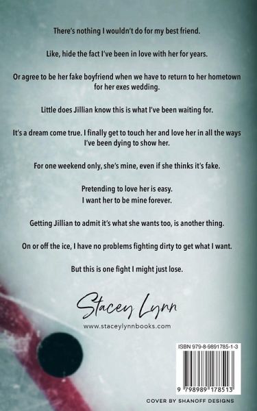 There's nothing I wouldn't do for my best friend. Like, hide the fact that I've been in love with her for years. Or agree to be her fake boyfriend when we have to return to her hometown for her exes wedding. Little does Jillian know this is what I've been waiting for. It's a dream come true. I finally get to touch her and love her in all the ways I've been dying to show her. For one weekend only, she's mine, even if she thinks it's fake. Pretending to love her is easy. I want her to be mine forever. Getting Jillian to admit it's what she wants too, is another thing. On or off the ice, I have no problems fighting dirty to get what I want. But this is one fight I might just lose.
