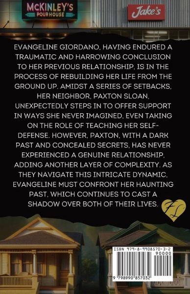 Evangeline Giordano, having endured a traumatic and harrowing conclusion to her previous relationship, is in the process of rebuilding her life from the ground up. Amidst a series of setbacks, her neighbor, Paxton Sloan, unexpectedly steps in to offer support in ways she never imagined, even taking on the role of teaching her self-defense. However, Paxton, with a dark past and concealed secrets, has never experienced a genuine relationship, adding another layer of complexity. As they navigate this intricate dynamic, Evangeline must confront her haunting past, which continues to cast a shadow over both of their lives. This book contains very serious trigger warnings for GRAPHIC domestic violence and sexual assault. Full list of trigger warnings: Abusive Relationship, Alcohol, Alcoholism, Anxiety, Assault, Attempted Murder, Attempted Rape, Blood, Bondage (Light), Breath Play, Car Accident (Mention), Cheating (False Accusation), Child Abuse (Historical), Death, Depression, Domestic Violence, Drugs (Mention), Emotional Abuse, Forced Proximity, Hospitalization, Infertility, Misogyny, Murder, Ostracization, Physical Abuse, Prison, Profanity, Post Traumatic Stress Disorder, Rape, Rough Sex (Consensual), Sexual Abuse (Historical), Sexual Assault (Not MMC), Sexually Explicit Scenes, Stalking, Strangulation, Torture, Toxic Parental Relationship, Violence