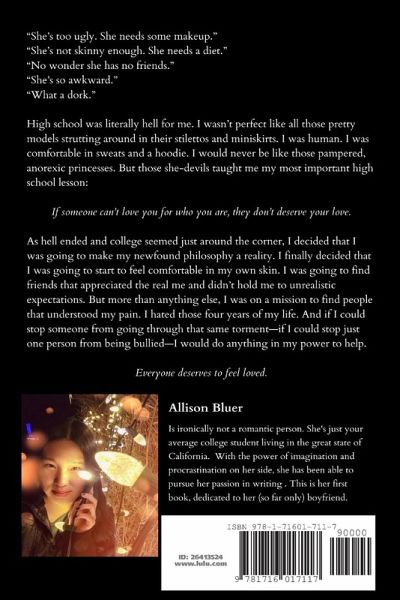 High school was hell for me. I wasn't perfect like all those pretty models strutting around in their stilettos and miniskirts. I was human. I was comfortable in sweats and a hoodie. I would never be like those pampered, anorexic princesses. But those she-devils taught me my most important high school lesson: If someone can't love you for who you are, they don't deserve your love. As hell ended and college seemed just around the corner, I decided that I was going to make my newfound philosophy a reality. I finally decided that I was going to start to feel comfortable in my own skin. I was going to find friends that appreciated the real me and didn't hold me to unrealistic expectations. Everyone deserves to feel loved. Even the school's notorious bad boy. I heard he's quite the fighter.