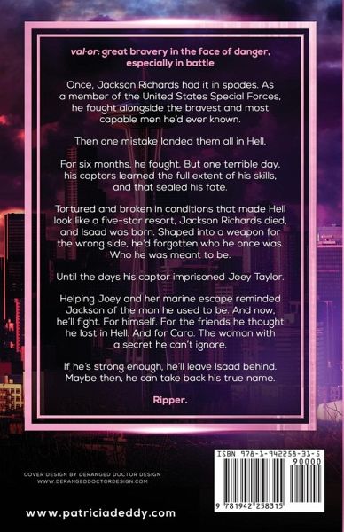 val·or: great bravery in the face of danger, especially in battle Once, Jackson Richards had it in spades. As a member of the United States Special Forces, he fought alongside the bravest and most capable men he'd ever known. Then one mistake landed them all in Hell. For six months, he fought. But one terrible day, his captors learned the full extent of his skills, and that sealed his fate. Tortured and broken in conditions that made Hell look like a five-star resort, Jackson Richards died, and Isaad was born. Shaped into a weapon for the wrong side, he'd forgotten who he once was. Who he was meant to be. Until the days his captor imprisoned Joey Taylor. Helping Joey and her marine escape reminded Jackson of the man he used to be. And now, he'll fight. For himself. For the friends he thought he lost in Hell. And for Cara. The woman with a secret he can't ignore. If he's strong enough, he'll leave Isaad behind. Maybe then, he can take back his true name. Ripper.