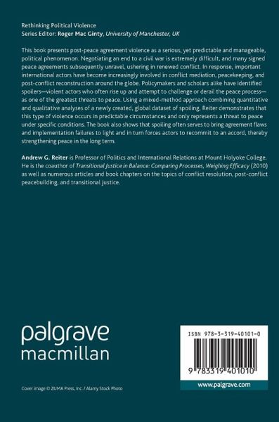 This book presents post-peace agreement violence as a serious, yet predictable and manageable, political phenomenon. Negotiating an end to a civil war is extremely difficult, and many signed peace agreements subsequently unravel, ushering in renewed conflict. In response, important international actors have become increasingly involved in conflict mediation, peacekeeping, and post-conflict reconstruction around the globe. Policymakers and scholars alike have identified spoilers-violent actors who often rise up and attempt to challenge or derail the peace process-as one of the greatest threats to peace. Using a mixed-method approach combining quantitative and qualitative analyses of a newly created, global dataset of spoiling, Reiter demonstrates that this type of violence occurs in predictable circumstances and only represents a threat to peace under specific conditions. The book also shows that spoiling often serves to bring agreement flaws and implementation failures to light andin turn forces actors to recommit to an accord, thereby strengthening peace in the long term.
