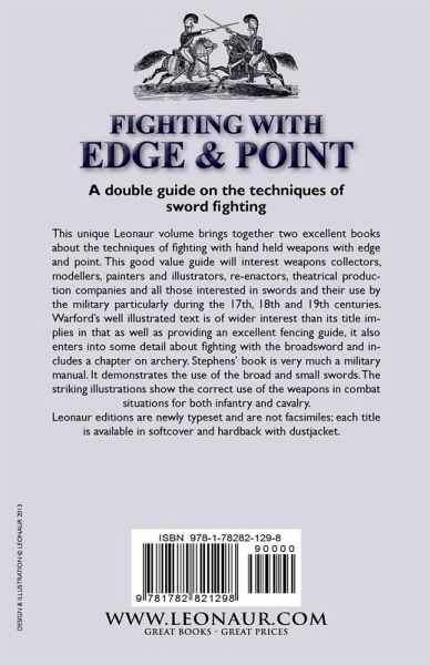 A double guide on the techniques of sword fighting This unique Leonaur volume brings together two excellent books about the techniques of fighting with hand held weapons with edge and point. This good value guide will interest weapons collectors, modellers, painters and illustrators, re-enactors, theatrical production companies and all those interested in swords and their use by the military particularly during the 17th, 18th and 19th centuries. Warford's well illustrated text is of wider interest than its title implies in that as well as providing an excellent fencing guide, it also enters into some detail about fighting with the broadsword and includes a chapter on archery. Stephens' book is very much a military manual. It demonstrates the use of the broad and small swords. The striking illustrations show the correct use of the weapons in combat situations for both infantry and cavalry. Leonaur editions are newly typeset and are not facsimiles; each title is available in softcover and hardback with dustjacket.