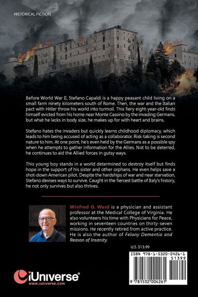 Before World War II, Stefano Capaldi is a happy peasant child living on a small farm ninety kilometers south of Rome. Then, the war and the Italian pact with Hitler throw his world into turmoil. This fiery eight-year-old finds himself evicted from his home near Monte Cassino by the invading Germans, but what he lacks in body size, he makes up for with heart and brains. Stefano hates the invaders but quickly learns childhood diplomacy, which leads to him being accused of acting as a collaborator. Risk-taking is second nature to him. At one point, he’s even held by the Germans as a possible spy when he attempts to gather information for the Allies. Not to be deterred, he continues to aid the Allied forces in gutsy ways. This young boy stands in a world determined to destroy itself but finds hope in the support of his sister and other orphans. He even helps save a shot-down American pilot. Despite the hardships of war and near starvation, Stefano devises ways to survive. Caught in the fiercest battle of Italy’s history, he not only survives but also thrives.