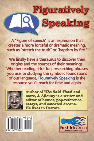 A figure of speech is an expression in which the words are used, but not in their literal sense, to create a more forceful or dramatic meaning. They are often in the form of metaphors, similes and hyperbole "A fountain of knowledge," is a good example. "Stretching the truth," is another. With Figuratively Speaking, we finally have a thesaurus to discover these phrases' origins and the sources of their meanings. Categories include: Attitudes; Body Types; Competition; Creature Comforts; Letting Loose; Ethics; Influence; Life, Health, & Death; Money; Personal Space; Personality Types; Speech; Thinking Power; Time; Trouble, Turmoil, & Commotion; and The World of Work. Whether reading it for fun, researching phrases you use, or studying the symbolic foundations of our language, Figuratively Speaking is the resource you'll reach for time and again.