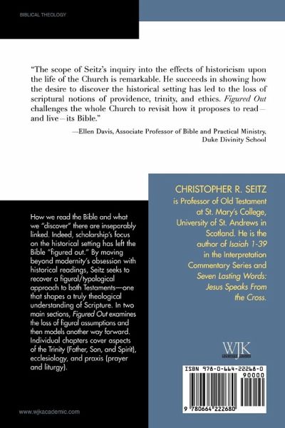 The way we read Scripture and what in turn we discover are connected. All of our attempts to find the historical backgrounds to texts have led us to believe that we have "figured out" the Bible. Steering a course between modernity's obsession with historical readings and fundamentalism's compulsion for a-historical readings, this text recovers a figural/typological approach to both Testaments that shapes a theological understanding of Scripture. Individual chapters cover various aspects of the Trinity (Father, Son and Spirit), the nature and practices of the Church, and facets of the spiritual life.