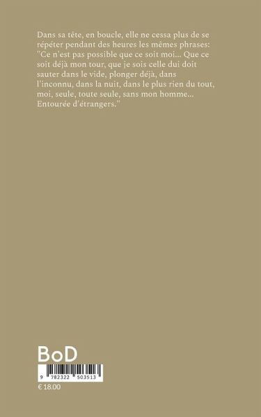 Dans sa tête, en boucle, elle ne cessa plus de se répéter pendant des heures les mêmes phrases: "Ce n'est pas possible que ce soit moi... Que ce soit déjà mon tour, que je sois celle qui doit sauter dans le vide, plonger déjà, dans l'inconnu, dans la nuit, dans le plus rien du tout, moi, seule, toute seule, sans mon homme... Entourée d'étrangers."